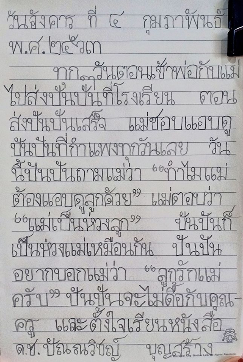 หนูน้อย 5 ขวบ เขียนไดอารี่ ถึงแม่