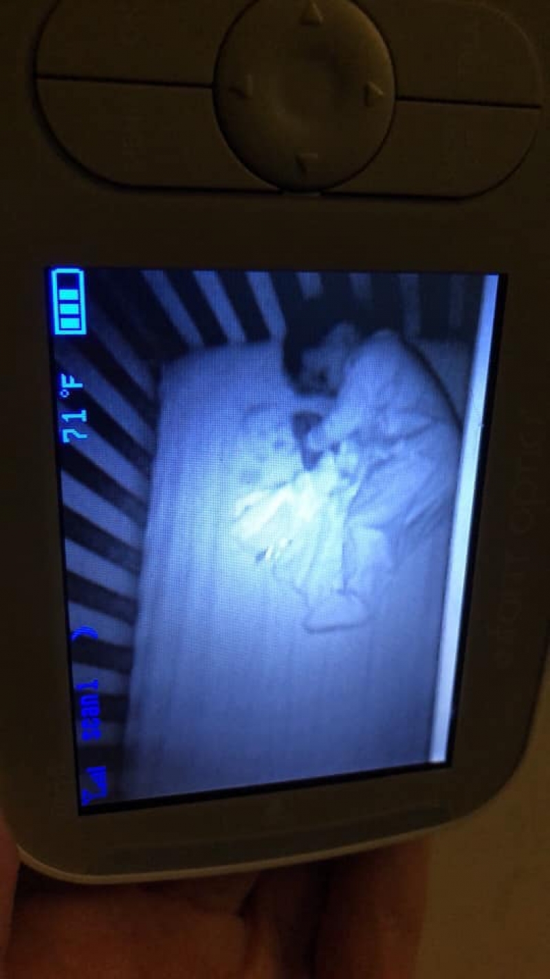 แม่ เปิดดูภาพในกล้อง มีหน้าหนูน้อยอีกคนบนเตียงของบุตร