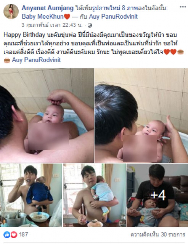 เป็นอีกหนึ่งเรื่องราวที่โซเชียลเข้ามาแสดงความเห็นกันเป็นจำนวนมาก หลังมีผู้ใช้เฟสบุ๊คชื่อ Anyanat Aumjang ได้ออกมาโพสต์ภาพผ่านเฟสบุ๊คส่วนตัว พร้อมทั้งได้ระบุข้อความว่า Happy Birthday นะคับขุ่นพ่อ ปีนี้มีน้องมีคุณมาเป็นของขวัญให้น๊า ขอบคุณนะที่ช่วยเราได้ทุกอย่าง ขอบคุณที่เป็นพ่อและเป็นแฟนที่น่ารัก ขอให้เจอแต่สิ่งดีดี เรื่องดีดี งานดีดีนะคับผม รักนะ ไม่พูดเยอะเดี๋ยวได้ใจ