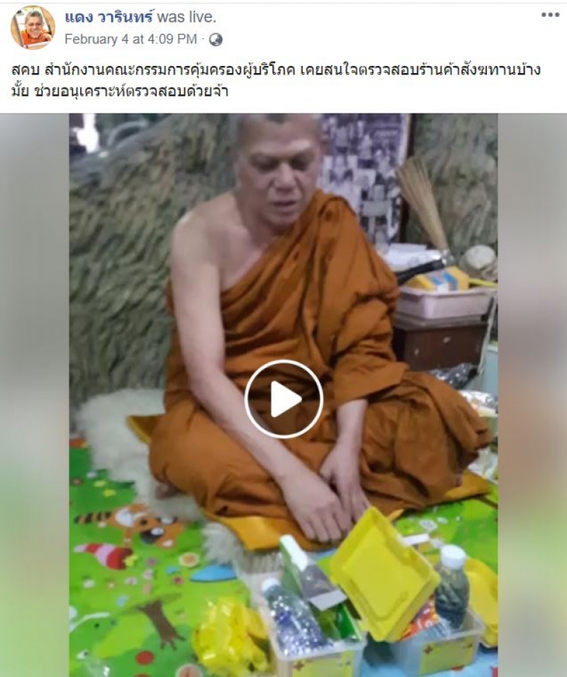 เป็นอีกหนึ่งเรื่องราวที่โซเชียลเข้ามาแสดงความเห็น และวิพากษ์วิจารณ์ กันเป็นจำนวนมาก หลังมีเฟสบุ๊คชื่อ แดง วารินทร์ ซึ่งเป็นของ พระครูบุญญาภิราม หรือ อาจารย์แดง เจ้าอาวาสวัดถ้ำเขาเต่า หมู่บ้านเขาเต่า อ หัวหิน จ ประจวบคีรีขันธ์ ได้โพสต์คลิป เพื่อขอให้สำนักงานคณะกรรมการคุ้มครองผู้บริโภคหรือ สคบ ให้ความสนใจตรวจสอบร้านค้าที่จำหน่ายสังฆทานเพื่อนำมาถวายแด่พระสงฆ์