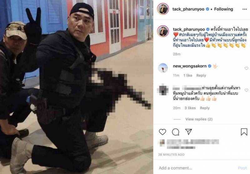 จากกรณีเหตุการณ์ที่โคราช มีหลายคนต่างเข้ามาชื่นชมการทำงานของเหล่าตำรวจ ทหาร และที่ไม่พูดถึงไม่ได้ นั่นก็คือบิ๊กแป๊ะที่ได้นำทีมลูกน้องลุย ทำให้หลังมีภาพเผยแพร่ออกมาประชาชนและชาวโซเชียล ต่างให้ความสนใจและต่างเข้ามาแสดงความคิดเห็นกันเป็นจำนวนมาก
