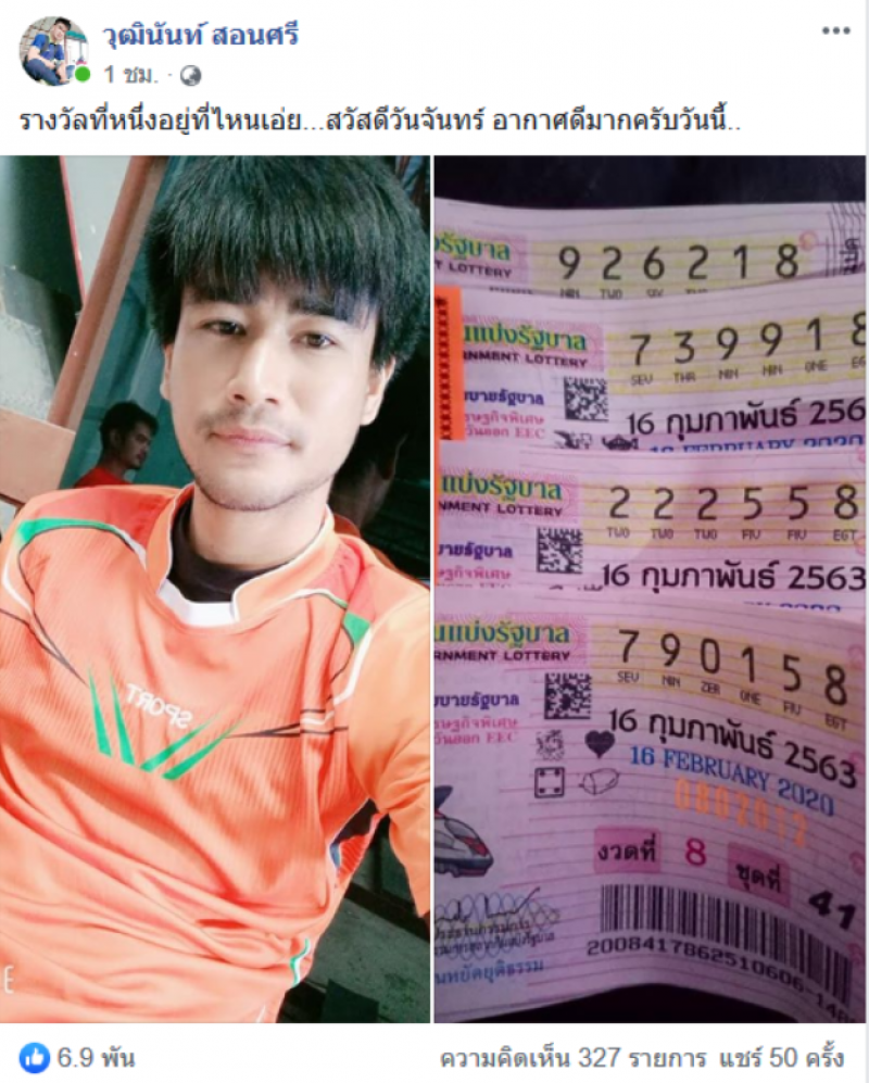 ใกล้เข้ามาเรื่อยๆแล้วจ้า สำหรับการประกาศผลรางวัลประกาศผลรางวัล สลากกินแบ่งรัฐบาลประจำวันที่ 16 กุมภาพันธ์ 63 เชื่อว่าหลายๆคนคงกำลังมองหาเลขสวยๆกันอยู่ใช่ไหมคะ แต่บางคนนั้นก็มีเลขในใจอยู่แล้ว วันนี้เราจึงได้รวบรวมข้อมูลมาฝากกัน สำหรับเลขคุณ วุฒินันท์ สอนศรี ที่รอบก่อนหน้าให้เข้าเต็ม ล่าสุดออกมาโพสต์เลขบอกอีกแล้วจ้า โดยได้ระบุข้อความว่า
