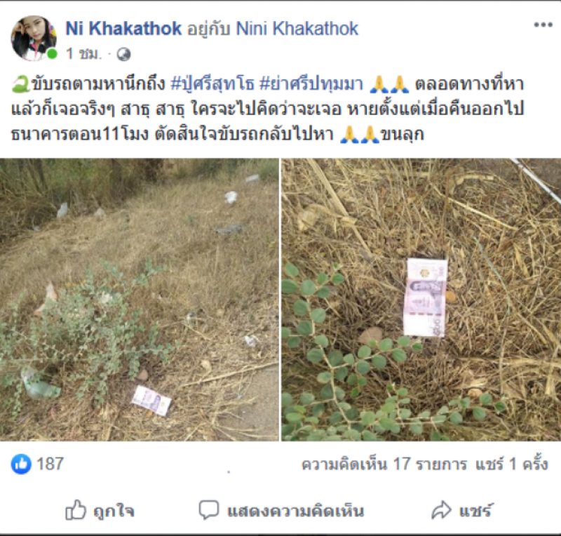 สาวทำเงินหาย นึกถึงปู่ศรีสุทโธ เช้ามาเจอเงินที่หล่น โซเชียลแห่ซื้อเลขตาม