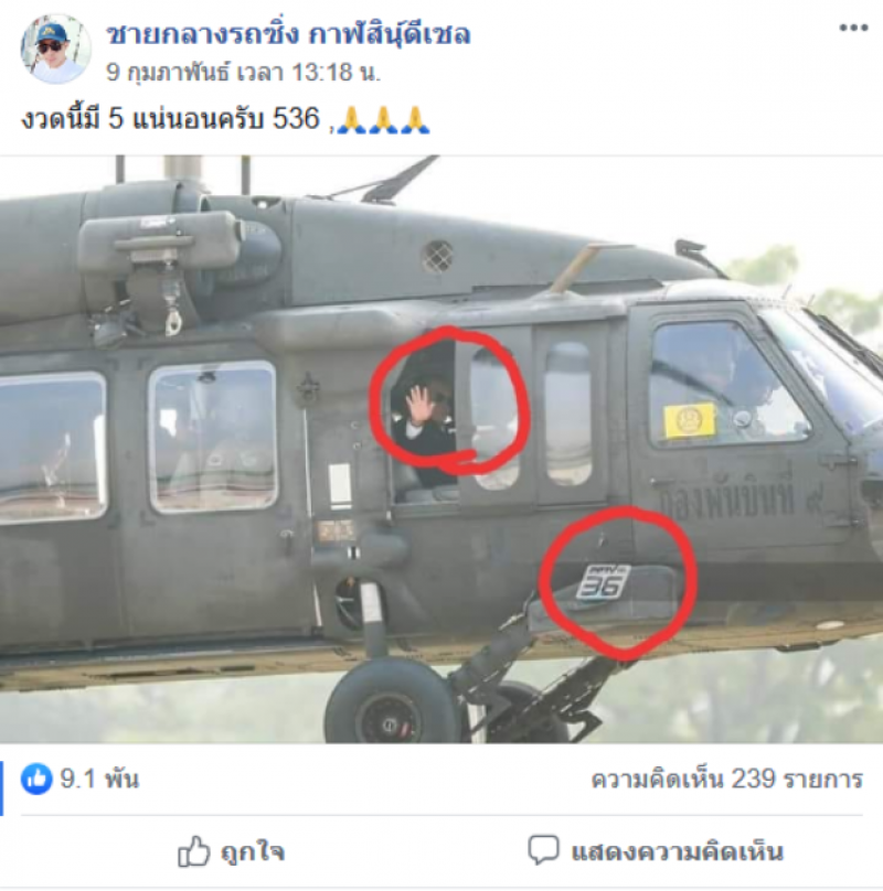 เลขเฮลิคอปเตอร์ บิ๊กตู่ บินไปโคราช