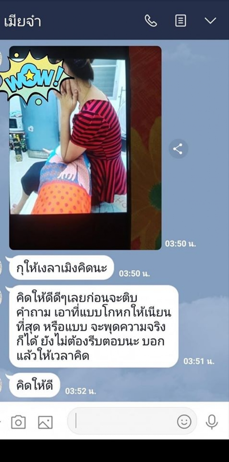 โดยเป้นภาพแชทที่แฟนสาวส่งรูปสาวอื่นมา พร้อมถามว่าใคร งานนี้งานเข้าเต็มๆเลยจ้า