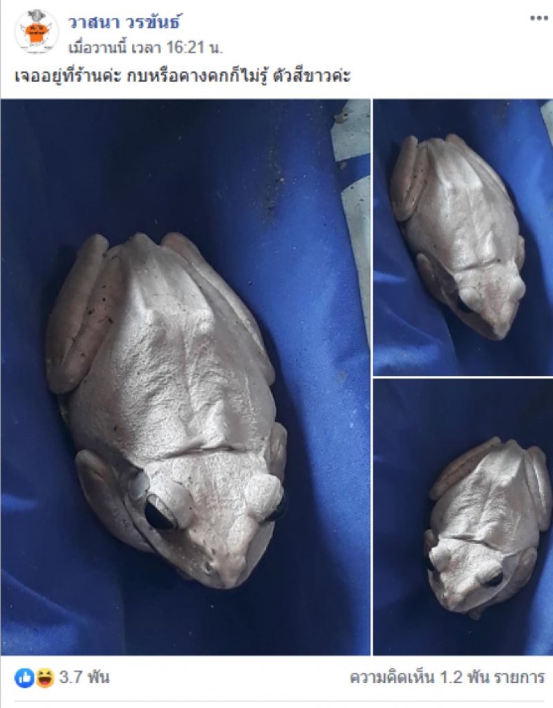หลายคนคงเจอเรื่องแปลกก่อนวันเลขออก เช่นเดียวกันกับผู้ใช้เฟซบุ๊กชื่อ วาสนา วรขันธ์ ที่ได้ดพสต์ภาพของตะปาดตัวหนึ่งมีสีขาวๆ โดยระบุข้อความว่า เจออยู่ที่ร้านค่ะ กบหรือคางคกก็ไม่รู้ ตัวสีขาวค่ะ