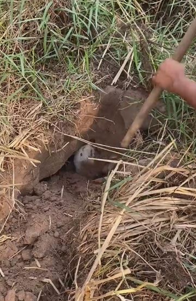 เป็นอีกหน่เรื่องราที่โซเชียลเข้ามาแสดงความเห็นกัเป็นจำนวนมาก หลังมีผู้ใช้เฟสบุ๊คชื่อ Bee Kung ได้ออกมาโพสต์ภาพ ขณะที่เขาและเพื่อนๆสังเกตเห็นความผิดปกติของโพรงหญ้าจึงช่วยกันนำเสียมมาขุดดู ความจริงทำพวกเขาเซอร์ไพรส์ เพราะสิ่งที่อยู่ในโพรงนั้นคือ สุนัขสุดน่ารัก