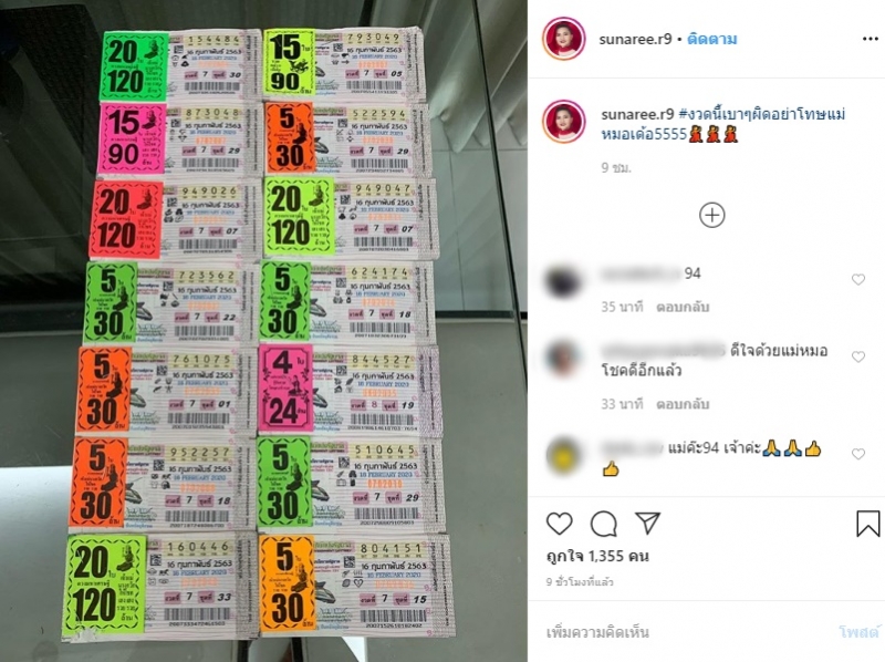 สุนารี โพสต์ภาพลอตเตอรี่ เป็นสิบๆชุด