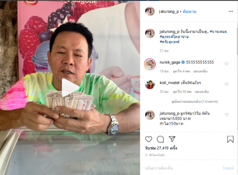 ล่าสุดด้านคุณพ่อ จาตุรงค์ มกจ๊ก พ่อของสาว ใบเฟิร์น พัสกร ก็ได้ออกมาโพสต์เคลื่อนไหวผ่านไอจีส่วนตัว โดยไม่ได้โพสต์ถึง บุตรสาวแต่อย่างใด โพสต์ถืแสลากกินกินแบ่งรัฐบาลพร้อมสีหน้ายิ้มแย้ม