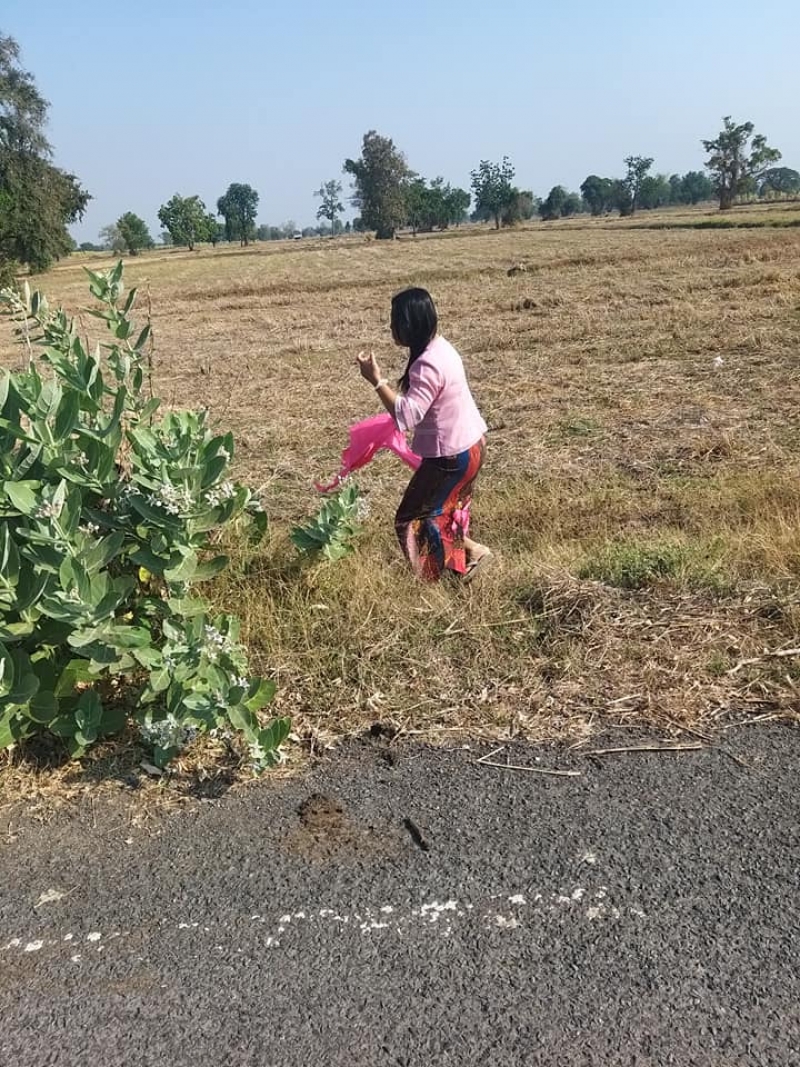 โฉมหน้าคุณครู วิ่งถกกระโปรงวิ่งไปกลางทุ่งนา ช่วยสุนัข