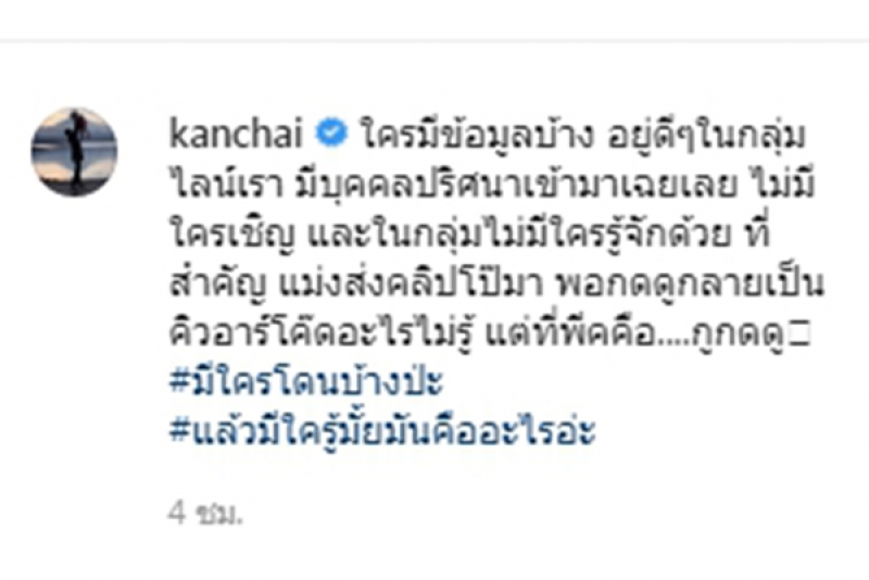 ใครมีข้อมูลบ้าง อยู่ดีๆ ในกลุ่มไลน์เรา มีบุคคลปริศนาเข้ามาเฉยเลย ไม่มีใครเชิญ และในกลุ่มไม่มีใครรู้จักด้วย ที่สำคัญส่งคลิปมาพอกดดูกลายเป็นคิวอาร์โคดอะไรไม่รู้ แต่ที่พีคคือกดดู มีใครโดนบ้างป่ะ แล้วมีใครู้มั้ยมันคืออะไรอ่ะ