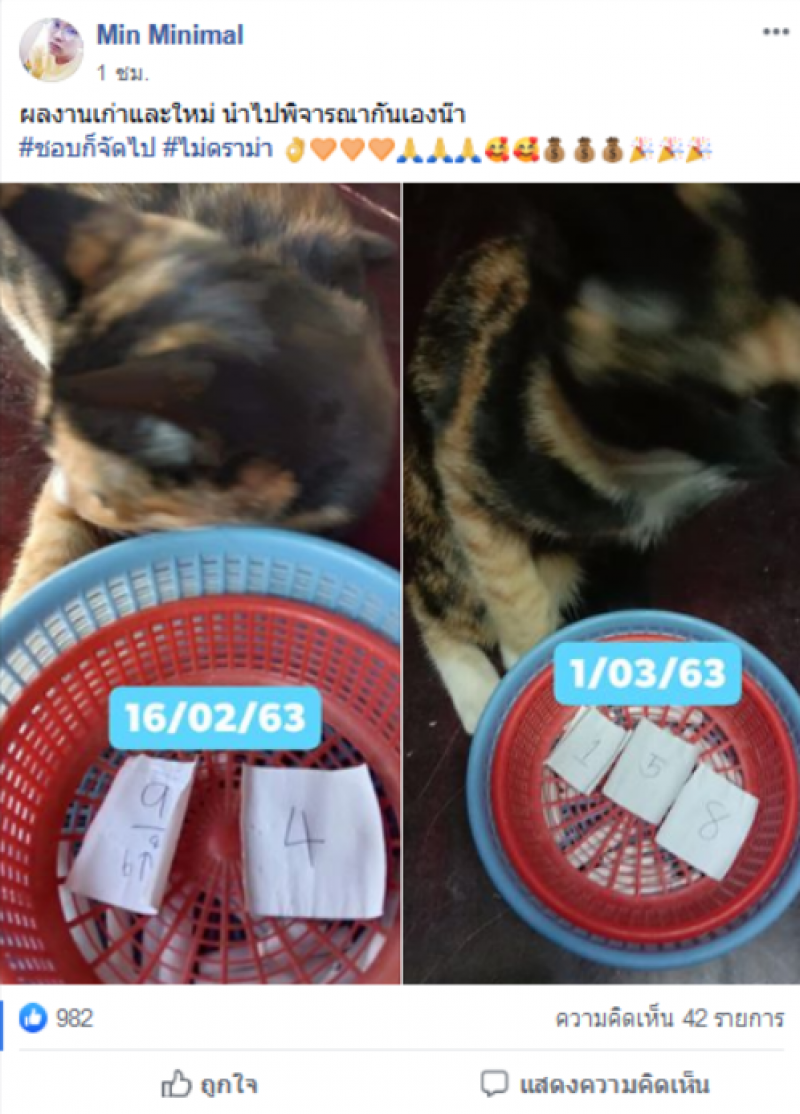 ใกล้เข้ามาทุกทีแล้วจ้า สำหรับการประกาศผลรางวัล สลากกินแบ่งรัฐบาลประจำวันที่ 1 มีนาคม 63 ต้องบอกเลยว่าเพื่อนๆหลายๆคนคงมีเลขสวยๆอยู่ในใจแล้ว และเพื่อนๆหลายๆคนคงกำลงมองหาเลขสวยๆอยู่ วันนี้เราจึงได้รวบรวมข้อมูลมาฝากกัน หลังมีผู้ใช้เฟสบุ๊คชื่อ Min Minimal ได้ออกมาโพสต์ภาพน้องแมวบอกเลข พร้อมทั้งได้ระบุข้อความว่า