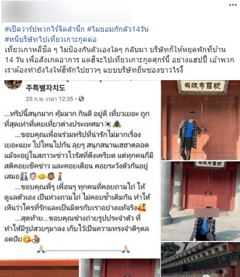 โซเชียล เปิดวาร์ป หนุ่มเที่ยวเกาหลี กลับไทยบริษัทให้หยุดกักตัวดูอาการ แต่ดันนัดเที่ยวไทยต่อ