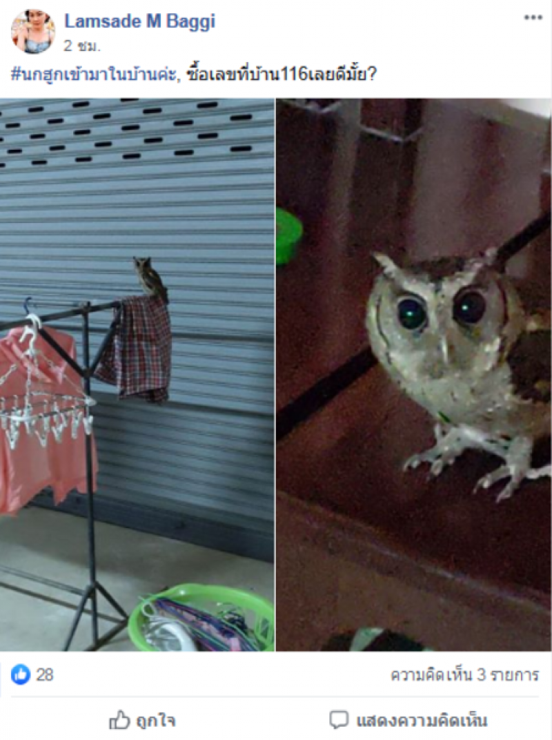 นกฮูกเข้ามาในบ้านค่ะ ซื้อเลขที่บ้าน116เลยดีไหม