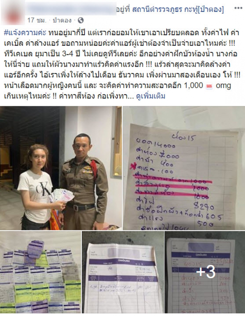 โดยเธอได้โพสต์ภาพลงเฟซบุ๊กส่วนตัว พร้อมระบุข้อความว่า แจ้งความค่ะ ทนอยู่มากี่ปี แต่เราก็ยอมให้เขาเอาเปรียบตลอด ทั้งค่าไฟ ค่าเคเบิ้ล ค่าล้างแอร์ ขอถามหน่อยค่ะค่าแอร์ผู้เช่าต้องจำเป็นจ่ายเองไหมคะ อยู่มาเป็น 3 4 ปี ไม่เคยดูทีวีเลยค่ะ อีกอย่างค่าฝักบัวห้องน้ำ นางก็ให้นี่จ่าย แถมให้สามีนางมาทำแล้วคิดค่าแรงอีก