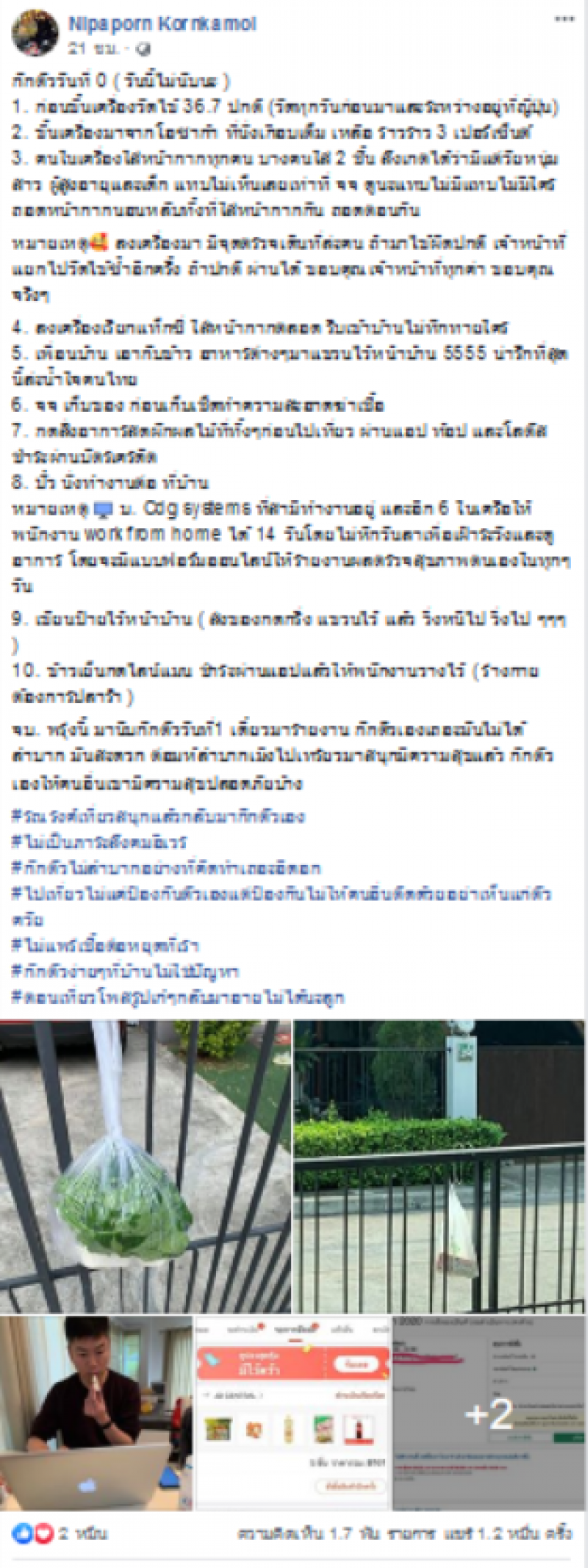 เป็นอีกหนึ่งเรื่องราวที่โซเชียลเข้ามาแสดงความเห็นกันเ็นจำนวนมาก หลังมีผู้ใช้เฟสบุ๊คชื่อ Nipaporn Kornkamol ได้ออกมาโพสต์ หลังกลับจากเที่ยวญี่ปุ่น แล้วต้องกักตัวโดยได้ระบุข้อความว่า