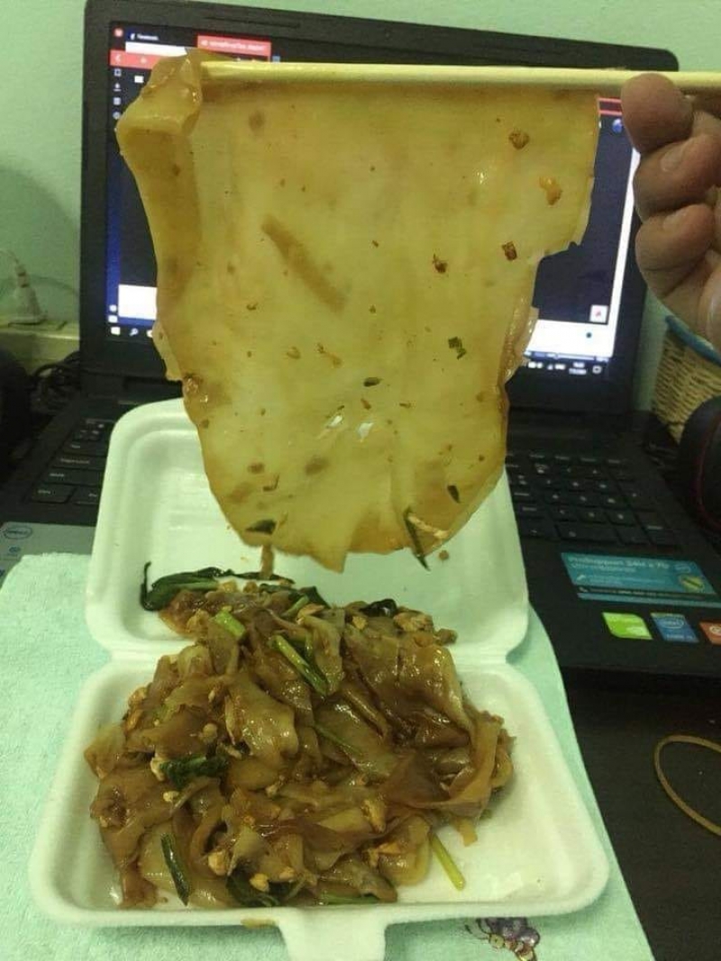เรียกไดว่าเป็นอีกหนึ่งเรื่องราวที่โซเชียลเข้ามาแสดงความคิดเห็นกันเยอะมากๆ หลังมีผุ้ใช้เฟสบุ๊ครายหนึ่งได้ออกมาโพสต์ภาพหลังไปซื้อผัดซีอิ้วมาทาน จากร้านอาหารตามสั่งแห่งหนึ่ง แต่พอเปิดกล่องออกมาถึงกับต้องอ้าปากค้าง เมื่อมีอยู่เส้นหนึ่งมีลักษณะใหญ่เป็นพิเศษ จนแทบไม่สามารถทานเข้าไปได้ภายในคำเดียว ทั้งนี้ผู้ใช้เฟซบุ๊กโพสต์ข้อความสั้นๆ ระบุว่า
