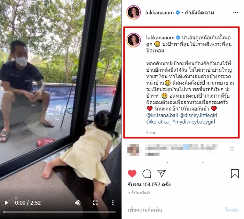 เป็นอีกหนึ่งคลิปที่ทำแฟนๆเข้ามาแสดงความเห็นกันเป้นจำนวนมาก คลิปของหนุ่ม บอล กฤษณะ อมิตรสูญ สามีสุดหล่องของดาราสาว อุ้ม ลักขณา อมิตรสูญ นั่นเอง โดยที่ล่าสุด สาวอุ้ม นั้นก็ได้โพสต์คลิปวีดิโอลงบนไอจี ที่สุดทรมานหัวใจคนเป็นพ่อ เมื่อ บอล กฤษณะ ทำได้เพียงมองบุตรสาว น้องดิสนีย์ ผ่านกระจก หลังต้องกักตัวเป็นเวลา 14 วัน