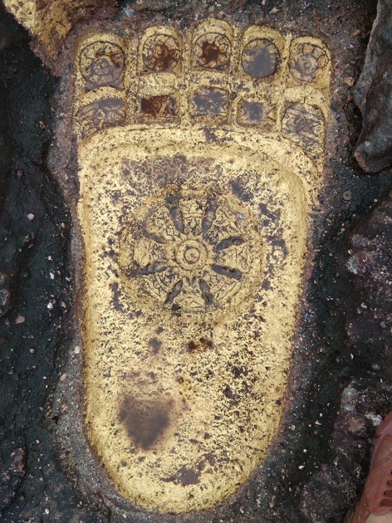 ค้นพบแล้ว รอยพระพุทธบาทแห่งใหม่ กึ่งกลางฝ่าเท้าเป็นรูปธรรมจักร
