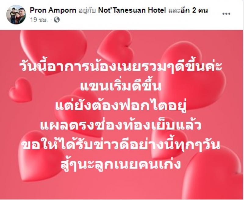 ล่าสุด คุณแม่ของน้องเนย ได้อัพเดตอาการของลูกชายให้ได้ทราบกันอีกครั้งว่า