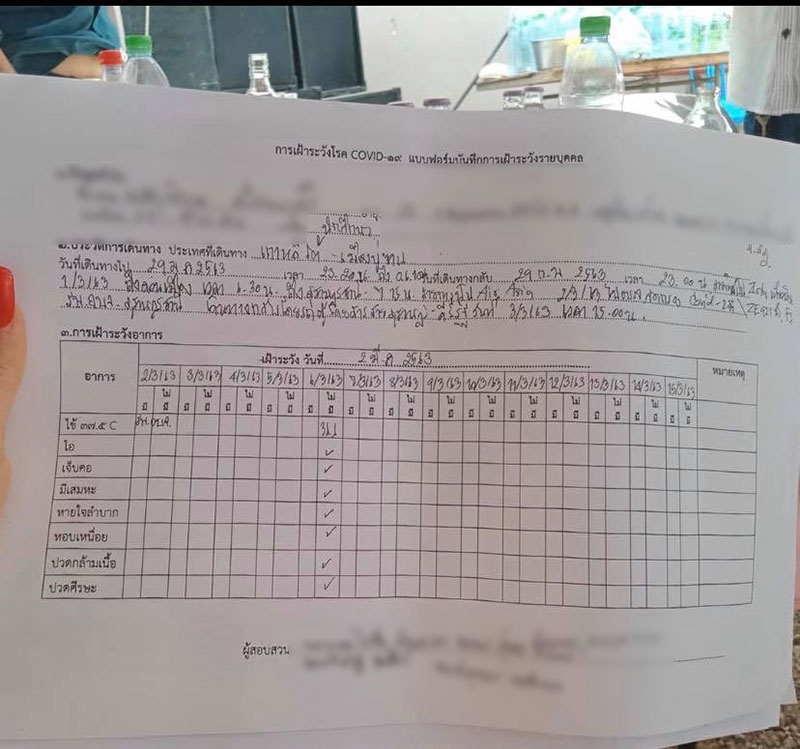 โดยเอกสารดังกล่าว ระบุอายุ 28 ปี อาชีพนักศึกษา เดินทางไปเมืองปูซาน เกาหลีใต้ ตั้งแต่วันที่ 29 มกราคม 2563 และเดินทางกลับมาเมื่อวันที่ 29 กุมภาพันธ์ 2563 ถึงสนามบินดอนเมือง