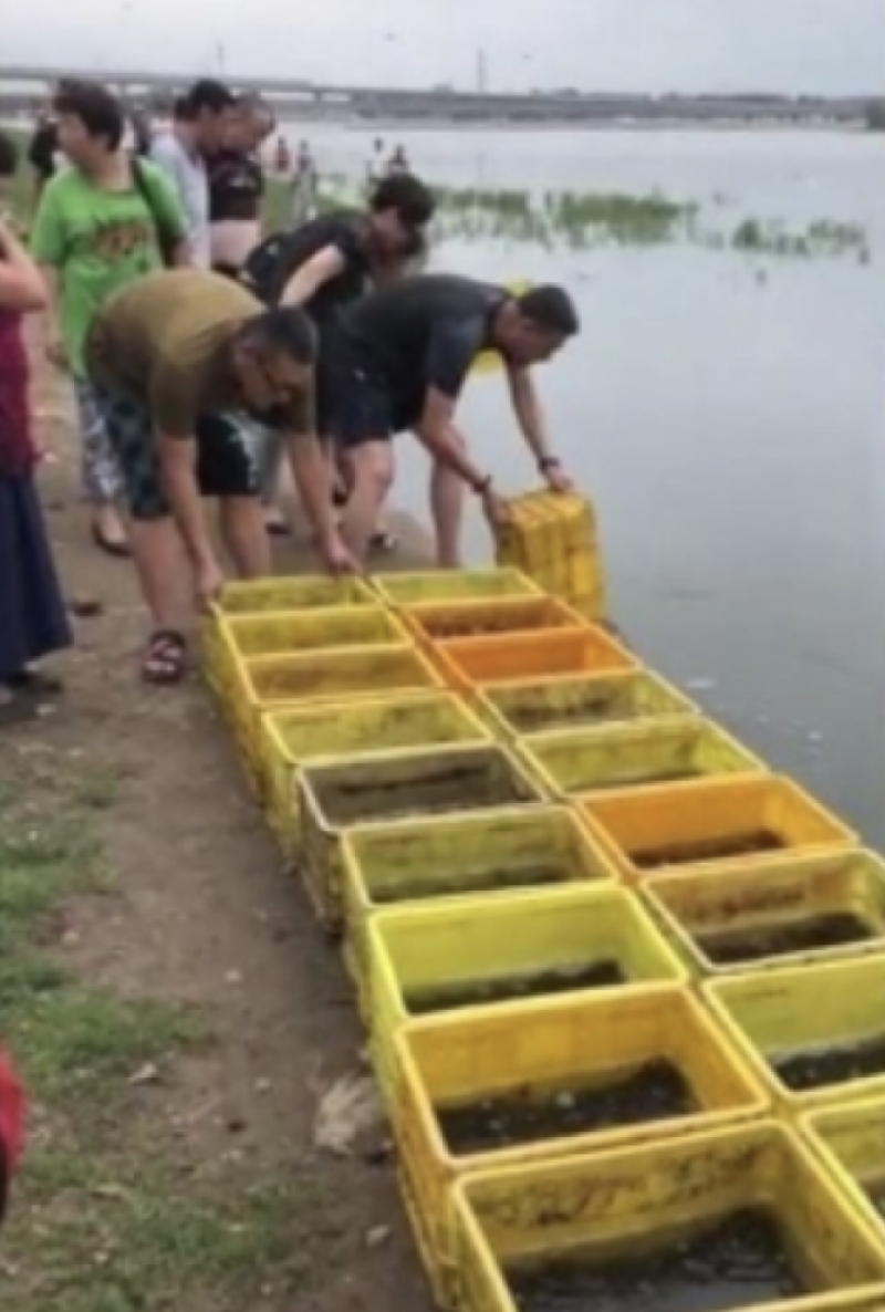 หนุ่มเหมาตลาด ซื้อปลา 10000 ตัว มาปล่อย