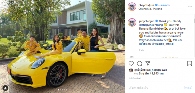 ล่าสุดคุณสามี ทำหวานมากๆเลย เมื่อจู่ๆ ก็ขับรถหรูสีเหลืองมา เซอร์ไพรส์สาว พลอย ชิดจันทร์ พร้อมแก๊งกล้วยหอมจอมซนของมามี้พลอย งานนี้เรียกได้ว่าเซอร์ไพรส์หนักมาก ทั้งนี้สาวพลอยยังได้ระบุข้อความว่า
