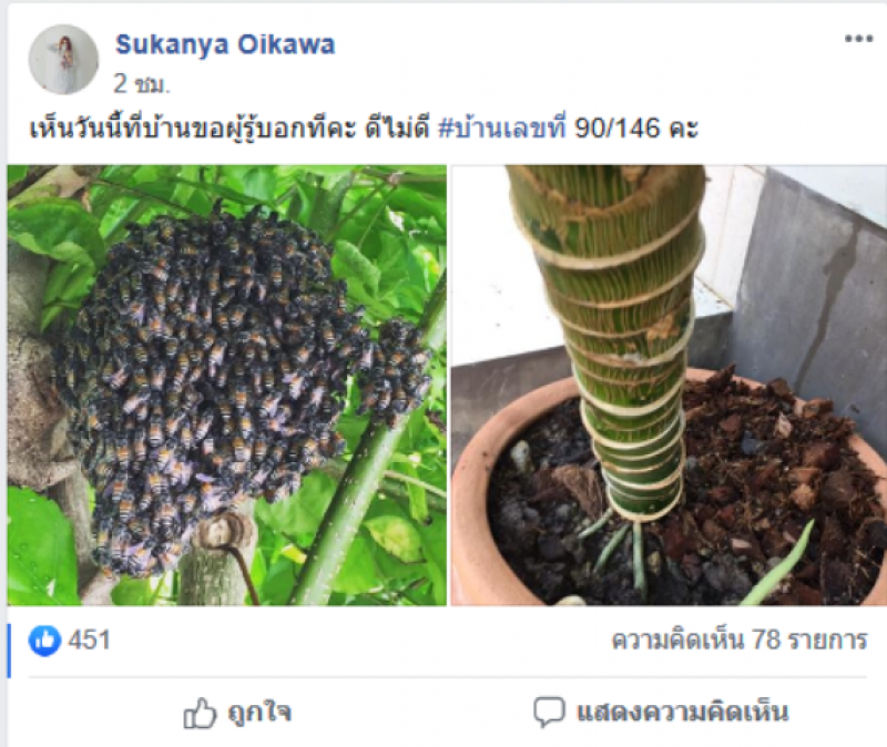 สาวโพสต์ผึ้งเข้ามาทำรังที่บ้าน โซเชียลแห่ซื้อเลขที่บ้าน