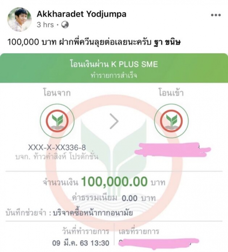 ผมขอบริจาค 100000 บาท เพื่อซื้อหน้ากากอนามัยให้กับแพทย์และ โรงบาล