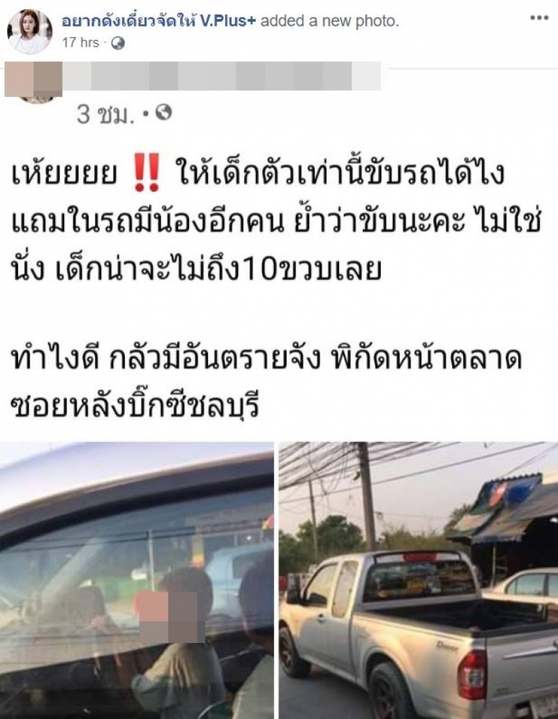 ใครตาดีแกะทะเบียนหน่อย พี่ตั้มได้ตามตัวถูก เห้ยยยย ให้ตัวเท่านี้ขับรถได้ไง แถมในรถมีน้องอีกคน ย้ำว่าขับนะคะ ไม่ใช่นั่ง น้องน่าจะไม่ถึง10ขวบเลย ทำไงดี กลัวมีอันตรายจัง พิกัดหน้าตลาด ซอยหลังบิ๊กซีชลบุรี