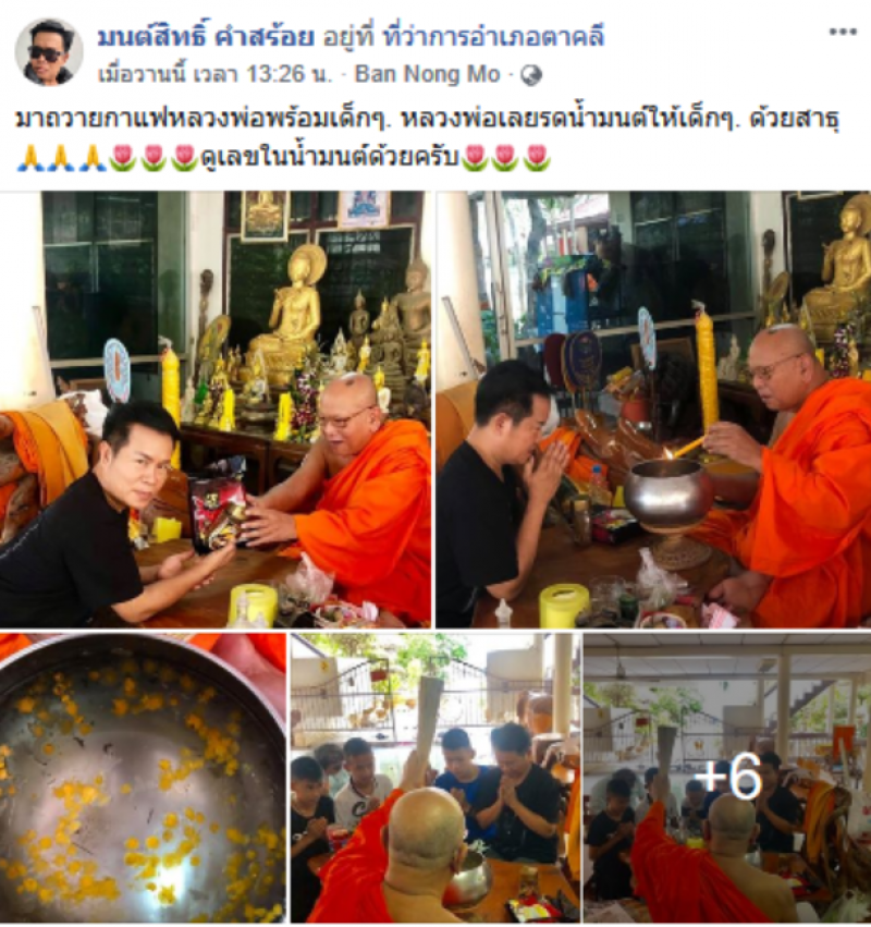 ล่าสุดวันที่ 12 มีนาคม 2563 มนต์สิทธิ์ คําสร้อย ได้โพสต์ภาพที่ตัวเองพาหนุ่มๆไปรดน้ำมนต์ ที่ว่าการอำเภอตาคลี พร้อมข้อความว่า มาถวายกาแฟหลวงพ่อพร้อมหนุ่มๆ หลวงพ่อเลยรดน้ำมนต์ให้ด้วยสาธุ ดูเลขในน้ำมนต์ด้วยครับ