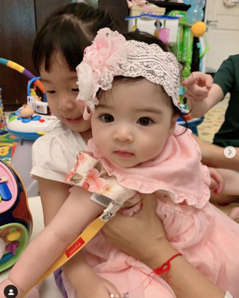 เป่าเปาเล่นกับน้องเดมี่ บุตรสาวของแมทธิว