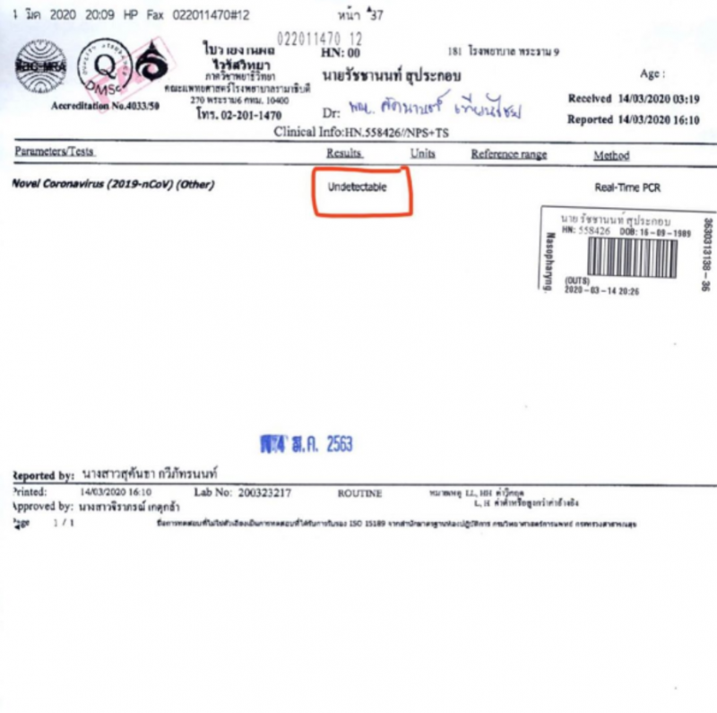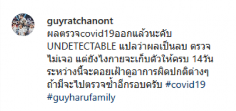 กาย ฮารุ โชว์ผลตรวจ COVID