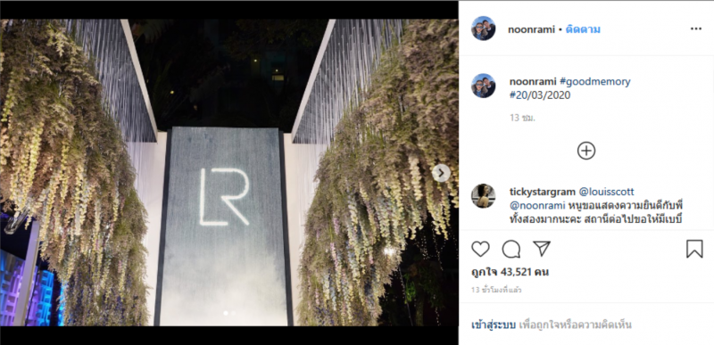 ล่าสุดวันที่ 20 มีนาคม ที่ผ่านมา ทั้งคู่ได้สร้างความเซอร์ไพรส์ให้กับแฟนคลับเป็นอย่างมาก เมื่อสาวนุ่น และ หนุ่มหลุยส์ ได้ลงรูปภาพงานด้านหน้าที่มีรูปพรีเวดดิ้งอยู่ทั้งคู่ และเขียนแฮชแท็กไว้ว่า goodmemory 20 03 2020 หลังจากนั้นเพื่อนๆในวงการบันเทิงและแฟนคลับต่างพากันมาแสดงความยินดีกันยกใหญ่