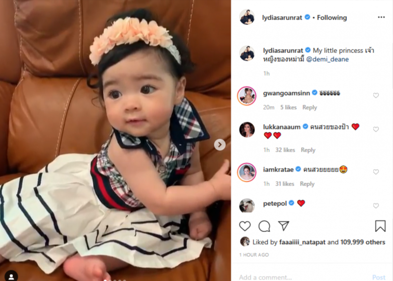 ล่าสุดสาวลิเดีย ก็ได้กำลังใจที่พิเศษสุดๆ คือน้องเดมี่ที่ใส่ชุดลายสก๊อตน่ารักส่งยิ้มหวานให้กับแม่ลิเดีย โดยสาวลิเดียได้โพสต์รูปและวิดีโอสุดน่ารักของน้องเดมี่ ลงอินสตาแกรมพร้อมข้อความว่า Verified My little princess เจ้าหญิงของหม่ามี๊