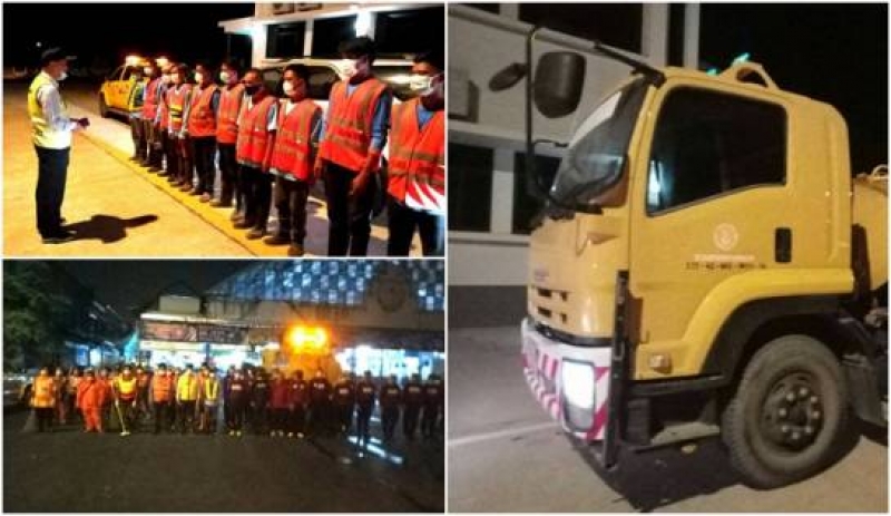 มีการเก็บกวาดขยะสิ่งปฏิกูล ฉีดน้ำทำความสะอาดในพื้นที่บริเวณถนน ฟุตปาท และอาคารเปิด