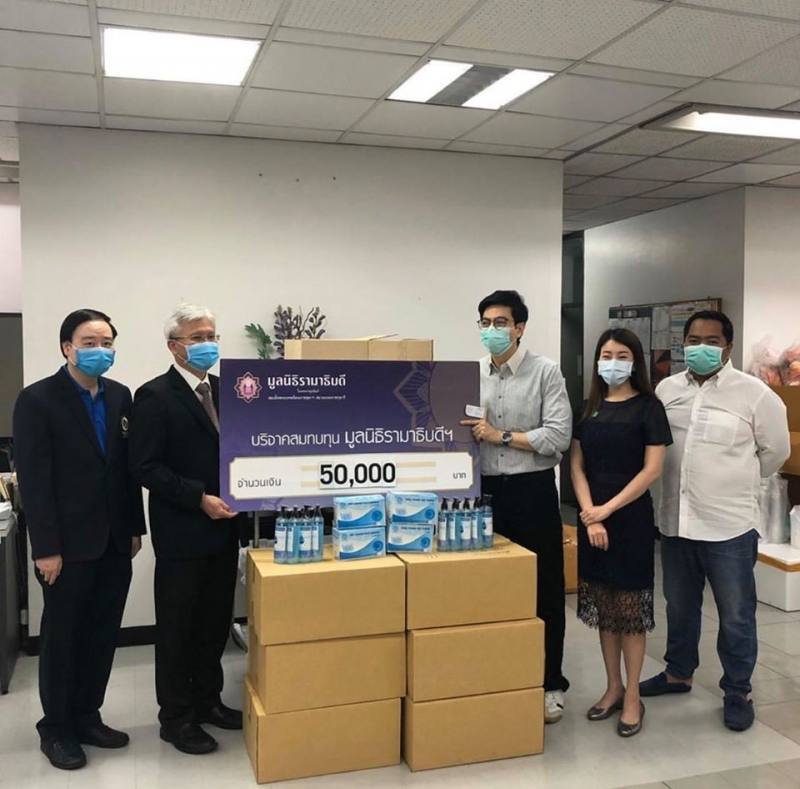 แซม ยุรนันท์ บริจาคเงิน อุปกรณป้องกันให้มูลนิธิรามาธิบดี