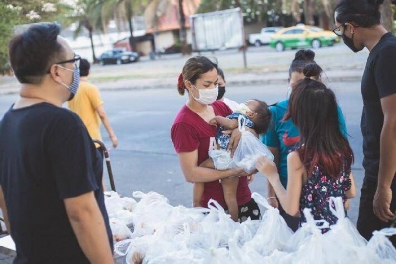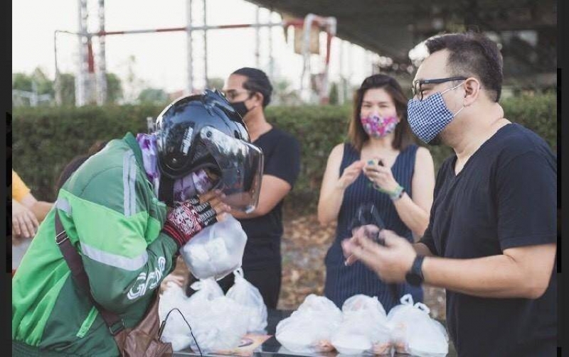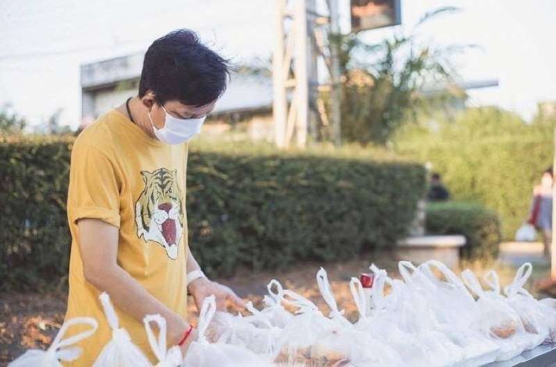 ป๋อง กพล ทองพลับ และทีมงานร้านเดอะช็อคข้าวต้มผี ร่วมกันแจกข้าวกล่องฟรี