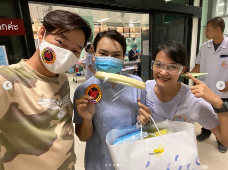 โบ สุนิตา นำหน้ากาก face shield ที่ทำเอง มอบให้โรงบาล