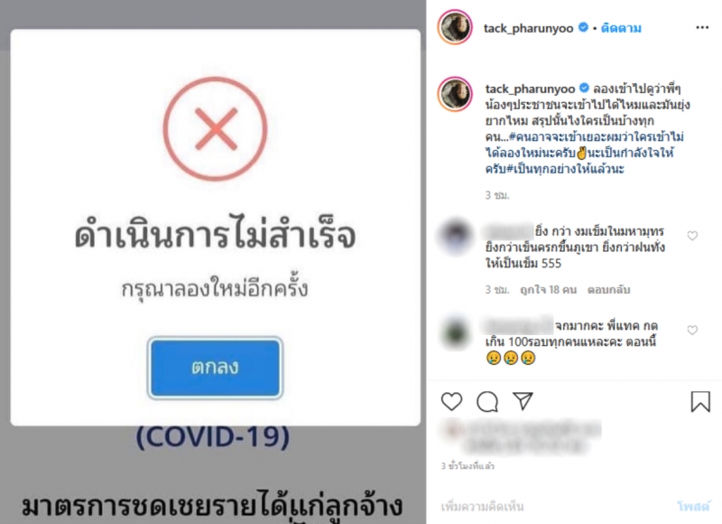 จากนั้นได้มีชาวโซเชียลเข้ามาคอมเมนต์ถึงการลงทะเบียน ที่เว็บไซต์ www เราไม่ทิ้งกัน com ว่าลงทะเบียนไม่ได้เช่นกัน