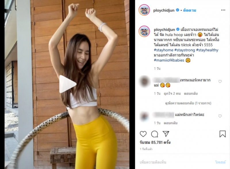 เป็นคุณแม่ลูก 4 ที่หุ่นดีมากๆ เพราะพลอย ชิดจันทร์ ชอบออกกำลังกายดูแลตัวเองถึงได้หุ่นดีแบบนี้