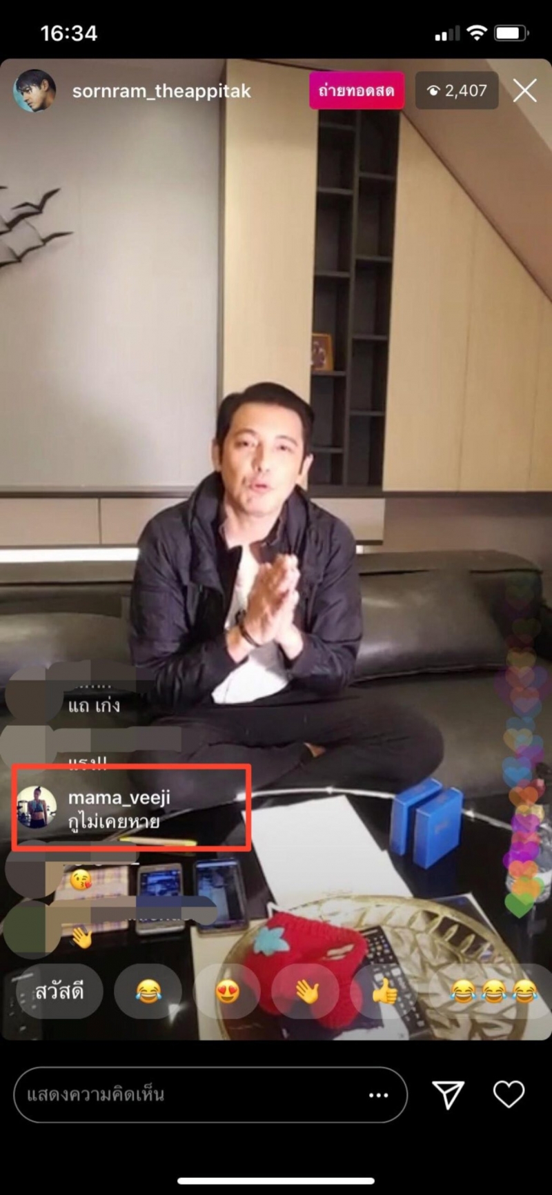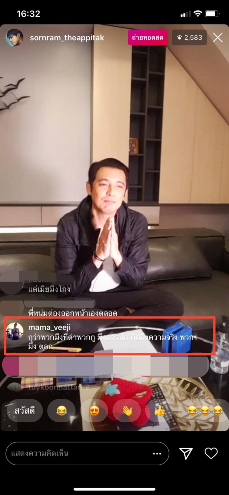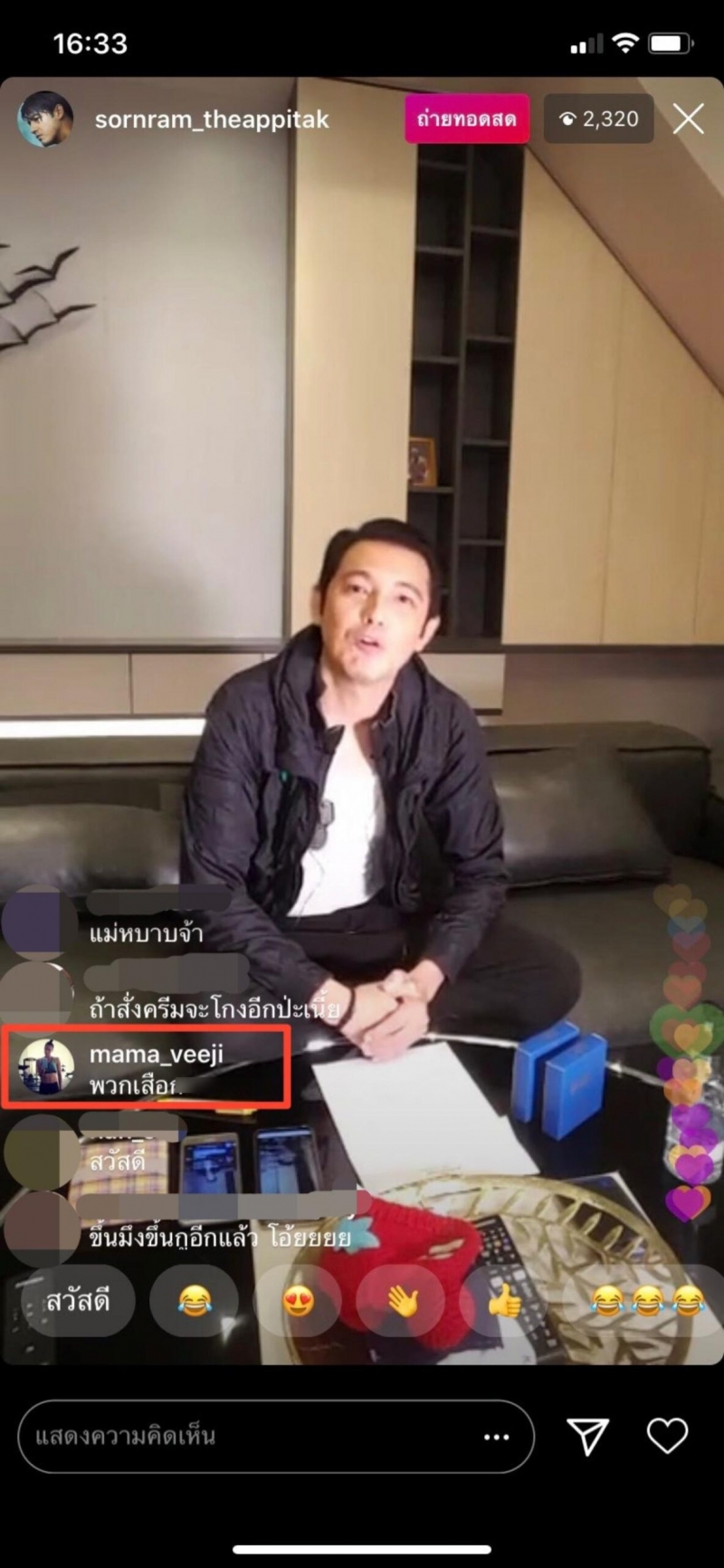 ภาพขณะหนุ่ม ศรราม ไลฟ์สด โดยภรรยา ติ๊ก บิ๊กบราเธอร์ เข้ามาตอมคอมเมนต์ชาวโซเชียล