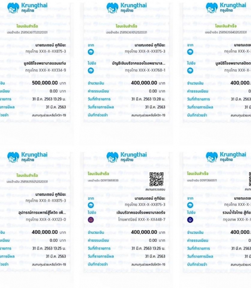 รายชื่อโรงพยาบาลที่ ณเดชน์ คูกิมิยะ ร่วมบริจาค 6 แห่ง จำนวน 2500000 บาท