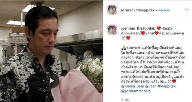 และล่าสุด เมื่อวันที่ 21 หนุ่ม ศรรามก็หอมดอกไม้ช่อใหญ่เซอร์ไพร้ส์ แฟนสาวติ๊ก สุดอบอุ่น พร้อมระบุแคปชั่นซึ้งๆว่า Happy Anniversary21กยครบรอบแต่งงาน1ปี ขอบพระคุณที่รักที่อยู่เคียงข้างพี่เสมอในวันที่สุขและทุกข์ ขอบพระคุณที่รักที่เสียสละความสุขส่วนตัวเพื่อบุพการีของเราทั้งคู่ ขอบพระคุณที่ไม่ว่าจะเหน็ดเหนื่อยแค่ไหนก้อตั้งใจทุ่มเทเลี้ยงดูวีจิเป็นอย่างดี ขอบพระคุณที่ให้อภัยพี่ในยามที่พี่พลาดพลั้ง สุดท้ายรักแม่จ๋านะครับ อยู่เป็นขวัญและกำลังใจให้พี่ตลอดไปนะครับผมรัก @mama_veeji @veeji_theappitak @sornramfanclub