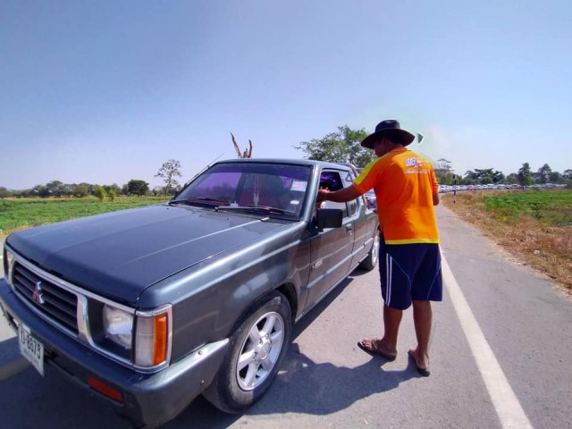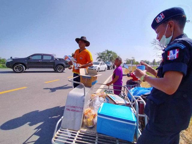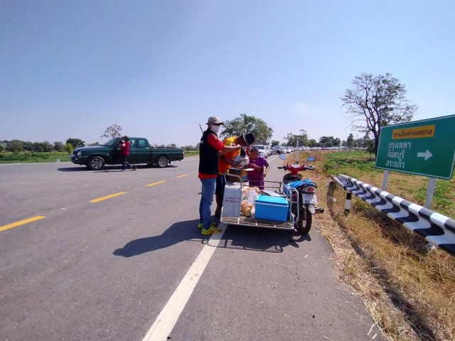 ครอบครัวชาวอีสาน ยืนกลางแดดร้อน แจกน้ำขนม ให้คนที่เดินทางกลับบ้าน