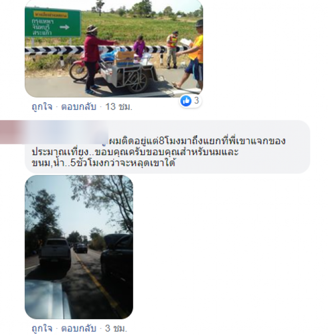 กลายเป็นเรื่องราวที่สร้างรอยยิ้มและความปีะทับใจให้แก่ผู้ที่พบเห็นและชาวโซเชียลเป็นจำนวนมาก ซึ่งได้มีเรื่องราวดีๆของครอบครัวหนึ่งที่ได้บรรทุกน้ำและขนมใส่รถซาเล้งพ่วงข้าง มาแจกให้กับประชาชนที่รถติดอยู่เต็มถนน ซึ่งบนถนนมีรถติดเต็มยาวเป็นหลายกิโลและใช้เวลานานมากกว่าจะขยับเคลื่นย้ายได้ทีละหน่อย ซึ่งพวกเขาเหล่านี้ได้ยืนท่ามกลางแสงแดด โดยในรถนั้นมีทั้งน้ำ และขนม ซึ่งพวกเขานำมาแจกให้กับผู้คนที่กำลังเดินทางกับบ้าน เรียกได้ว่าสร้างรอยยิ้มและความประทับใจให้แก่ผู้ที่พบเห็นและชาวโซเชียลอย่างมากเลยทีเดียวแหละจ้า