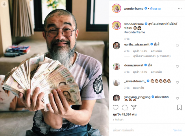 เรียกได้ว่าการกตัญญูเป็นเรื่องที่ดีที่ใครได้ทำไว้รับรองจะส่งผลดีกับชีวิตแน่นอน ดังเช่นสาวนักร้องเสียงดีคนนี้ วันเดอร์เฟรม หอบเงินสดเป็นฟ่อนให้พ่อแม่ หลังถอยรถป้ายแดงไปได้ไม่กี่วัน แบบนี้ต้องบอกว่าสวยและรวยมากจ้า วันนี้เราจึงนำภาพความประทับใจของสาวคนนี้มาฝาก โดยเธอได้โพสต์เรื่องราวว่า สุขใดเล่าจะเท่าให้ตังค์พ่อแม่ wonderframe หลังจากนั้นก็มีแฟนคลับเข้ามาชื่นชมเป็นอย่างมาก สุดยอดจริงๆไปชมความสุขของเธอกันเลยจ้า
