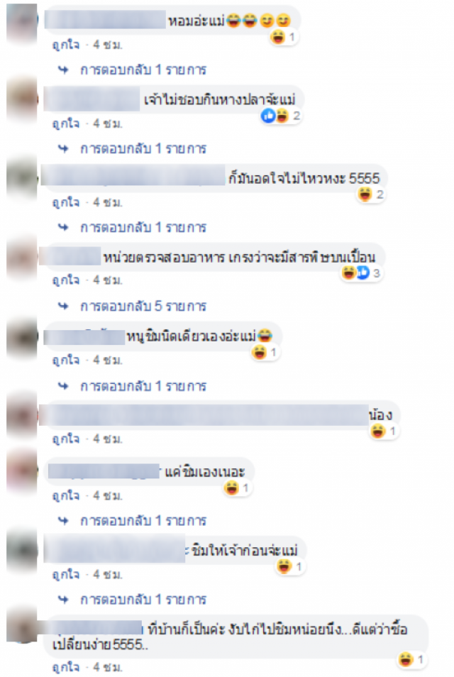 ชาวโซเชียลหลายคนต่างก็เข้ามาแสดงความคิดเห็นกันเป็นจำนวนมาก บ้างก็ว่า ที่บ้านก็เป็น เจ้าสุนัขที่บ้านได้แอบชิมไก่ไปชิ้นนึง