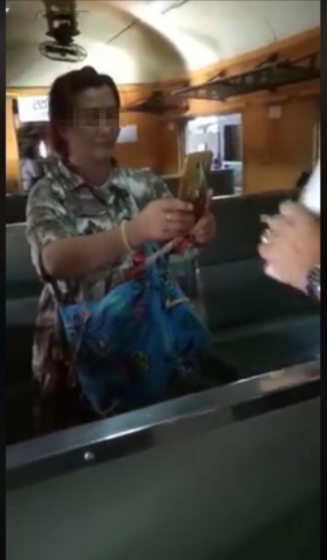 กลายเป็นอีกเรื่องราวที่ได้กลายเป็นประเด็นในโลกโซเชียลในขณะที่ เมื่อได้มีผู้ใช้เฟซบุ๊ค นัด ตรอกชมภู่ ได้โพสต์คลิปวิดิโอ ซึ่งในคลิปจะมีคุณป้าท่านหนึ่งกำลังมีอารมณ์โมโห เพราะถูกพนักงานห้ามไม่ให้นั่งตรงที่นั่งของพระภิกษุ บนขบวนรถไฟ ซึ่งทางเจ้าหน้าที่ได้นำป้าย ที่นั่งสำรองสำหรับพระภิกษุมาติดไว้ที่ตรงที่นั่งบริเวณนั้น โดยป้าคนดังกล่าวอ้างว่า พระมาค่อยลุก มันยังไม่มาก็ต้องนั่งได้ จะนั่งตรงไหนก็เหมือนกัน โดยผู้ที่ถ่ายคลิปวิดิโอได้บอกกับป้าคนดังกล่าวว่า ตรงนี้เป็นที่นั่งของพระ และที่นั่งตรงอื่นก็ว่างเยอะแยะทำไมป้าไม่ไปนั่ง