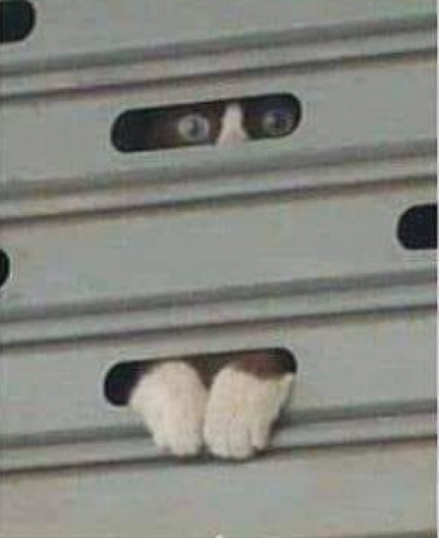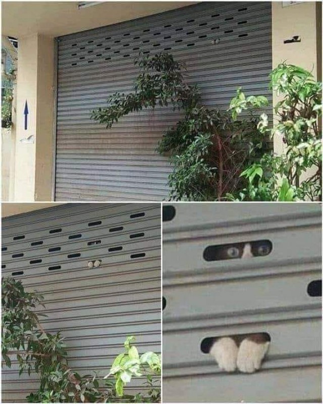 กลายเป็นอีกภาพที่สร้างรอยยิ้มและเสียงหัวเราะให้กับผู้คนที่พบเห็นและชาวโซเชียลเป็นจำนวนมาก เมื่อได้มีผู้ใช้เฟซบุ๊ครายหนึ่ง ได้โพสต์ภาพของประตูม้วนของอาคารแห่งหนึ่ง ซึ่งในทุกๆครั้งที่เขาเดินผ่าน จะรุ้สึกเหมือนว่ามีพลังงานบางอย่างกำลังจับจ้องมาที่เขา แต่พอหันไปมองที่ประตูดังกล่าวกลับไม่พบอะไร แต่พอได้มองไปดีๆอีกครั้ง ก็ต้องประหลาดใจที่ต้องพบกับแววตาคู่ปริศนา ที่กำลังจ้องมองมาที่เขา เขาจึงหยิบมือถือขึ้นมาเพื่อถ่ายรูปไว้เป็นหลักฐาน พอซูฒดูใกล้ๆก็พบกับแววตาใสแจ๋ว กับขาหน้าคู่เล็กๆของเจ้าแมวเหมียว เรียกได้ว่าทำเอาทั้งกลัวและฮาในเวลาเดียวกันเลยทีเดียว